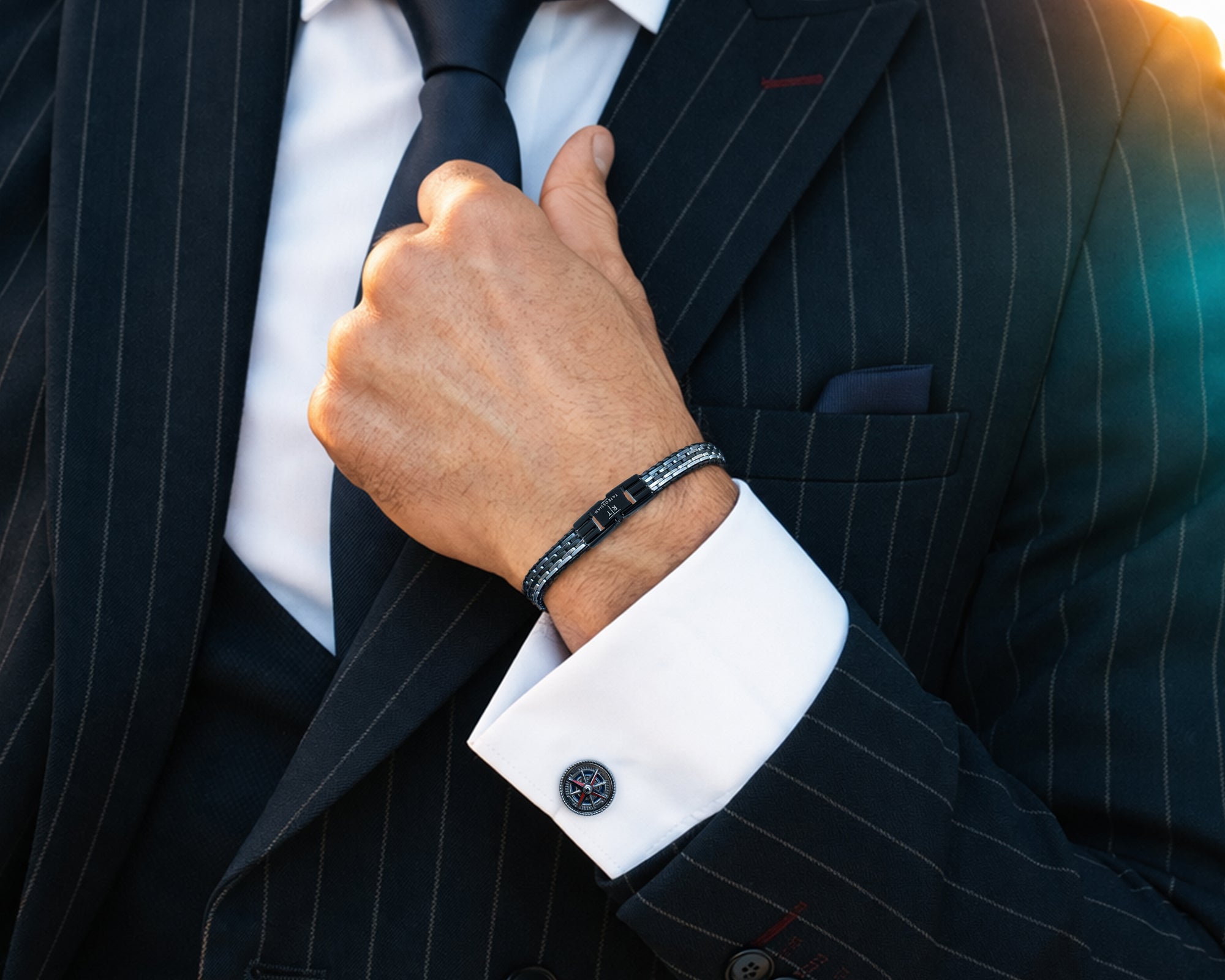 Rigato Mosaic Cufflink in Sterling Silver with Onyx
