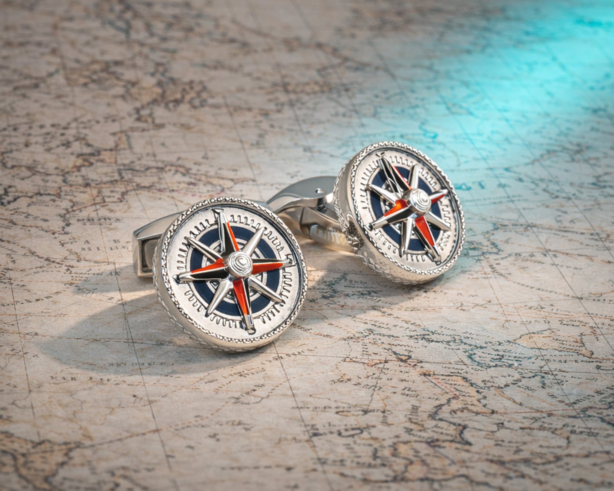 Rotating Trinity Cufflinks In Navy Enamel With Swarovski Crystals