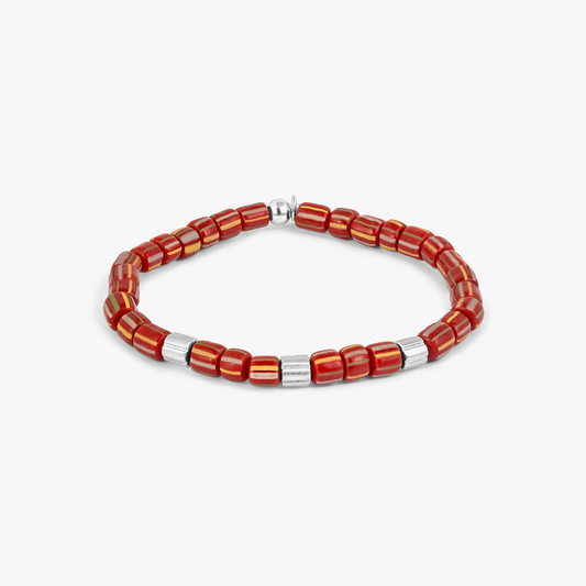 Navaho Triple Wrap Beaded Bracelet in Rhodium Silver with Tiger Eye and Hematite