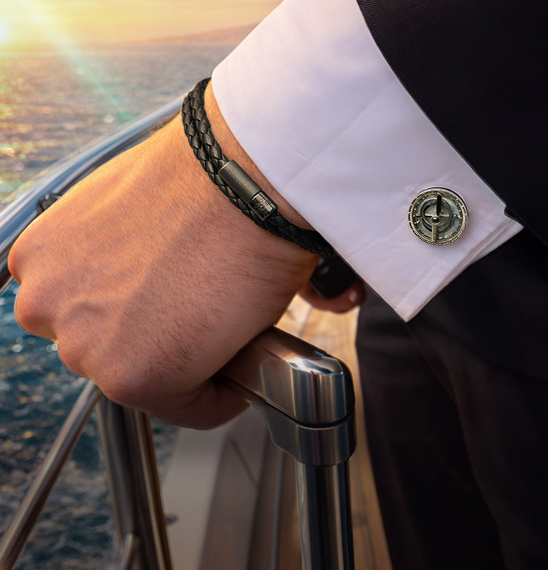 Gyrate Semi - Precious Cufflink in Onyx with Black Enamel