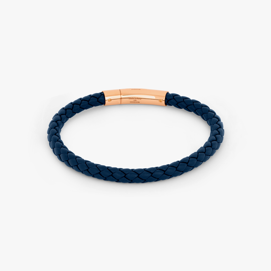 Tubo Taito Navy Leather Bracelet With 18k Rose Gold