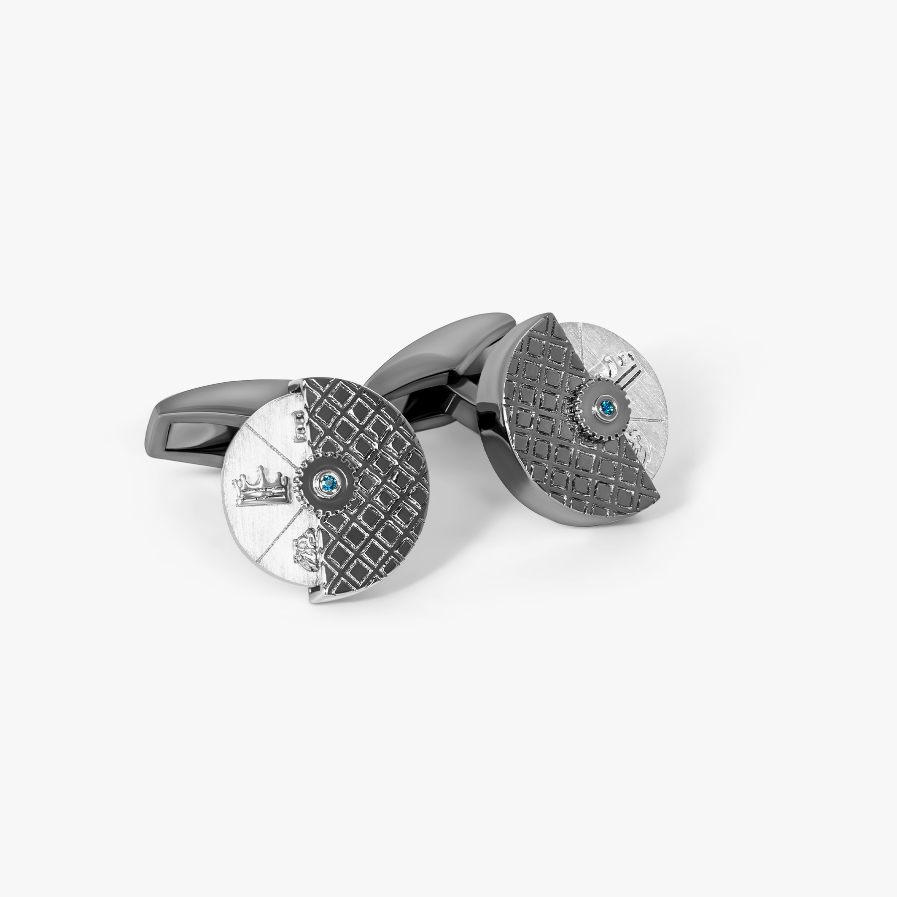 Regalia Spinning Disc Cufflinks In Black Rhodium Plated Silver