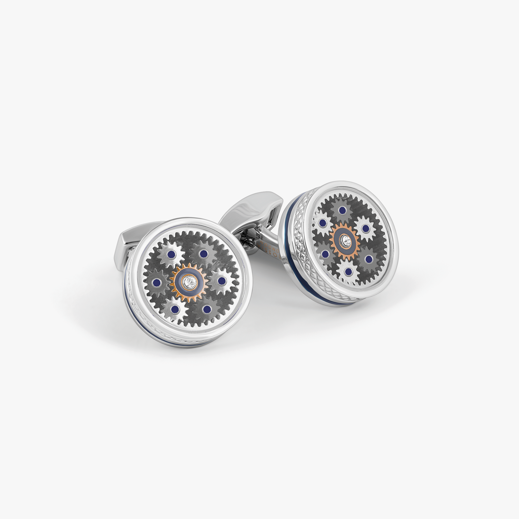 Septa Gear Cufflinks In Rose Gold & Palladium, With Carbon Fibre