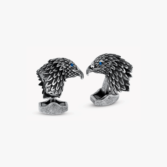 Oxidised Silver Eagle Mechanical Cufflinks With Blue Swarovski Elements