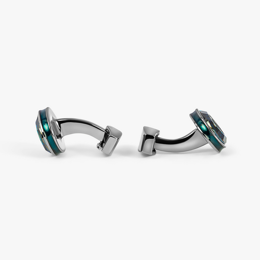 Rotondo Guilloche Semi-Precious cufflinks with white mother of pearl in stainless steel
