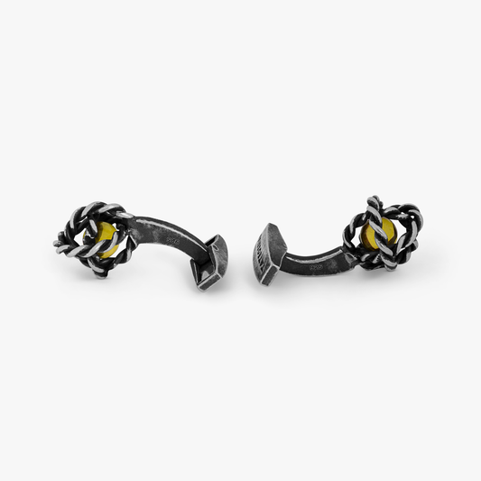 Gyroscope Glass cufflinks in antique silver and yellow glass