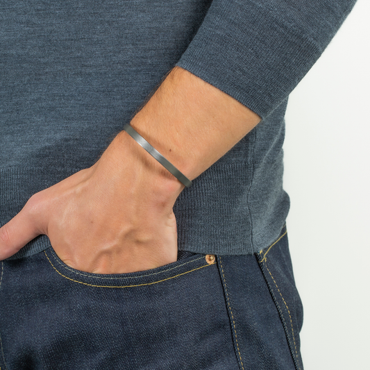 Like necklaces, bracelets are equally subtle and impactful, which is why they’re so widely worn by people who love to accessorise. Whether you’re after a sterling silver engravable bracelet or an engravable bar link bracelet, we’ve got you covered. Tateossian is home to all manner of bracelet styles that are designed to accommodate engraving. From our Buckingham Rope Hinge Cuff Bangle in Yellow Gold Plated Silver to our Pure Thread Bracelet with Black Macrame in Black Rhodium Plated Sterling Silver, we can provide products that leave your recipient with a piece of you on their wrist.