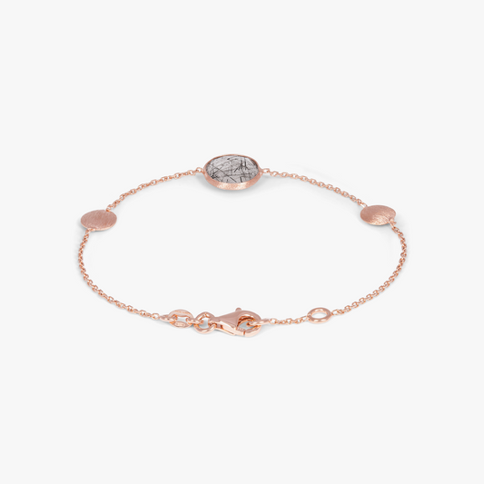 Kensington Bracelet in 14K Satin Rose Gold with Black Rutilated Quartz