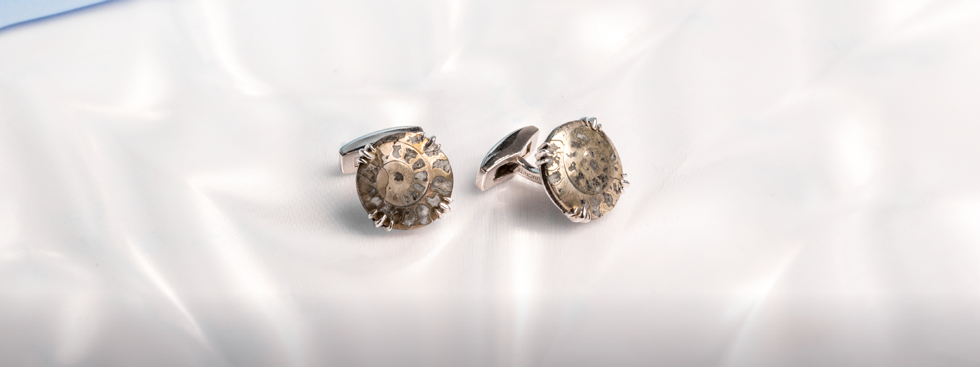 Ammonite Cufflinks in Rhodium Silver with Turquoise (Limited Edition)
