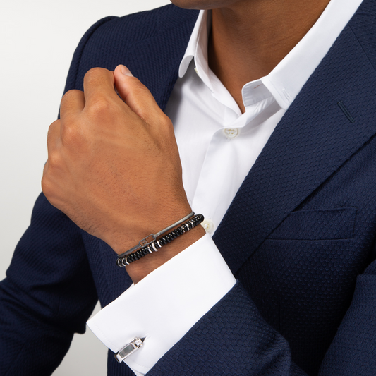Refratto Cufflinks And Shirt Studs Set With Black Spinel In Rhodium Plated Silver (Limited Edition)
