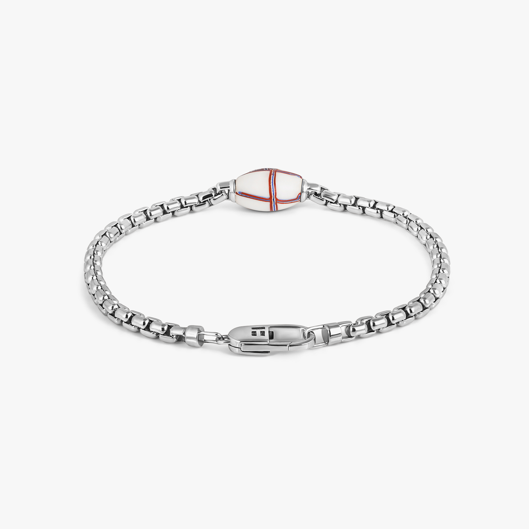 French Cross Chain Bracelet In Sterling Silver With White French Cross Bead (Limited Edition)