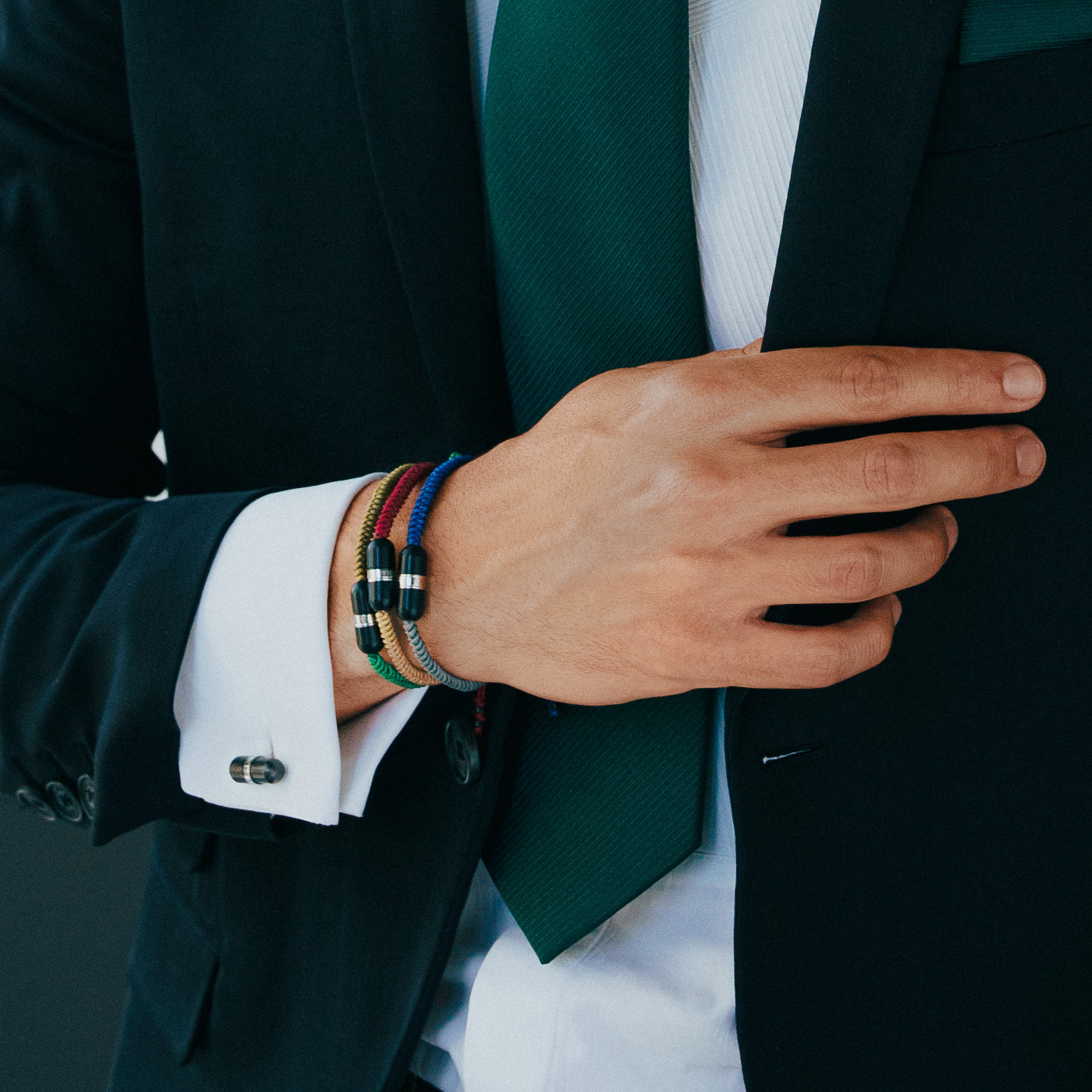 ELTON JOHN Metallic Pill Primo braceletburgundy and beige macrame