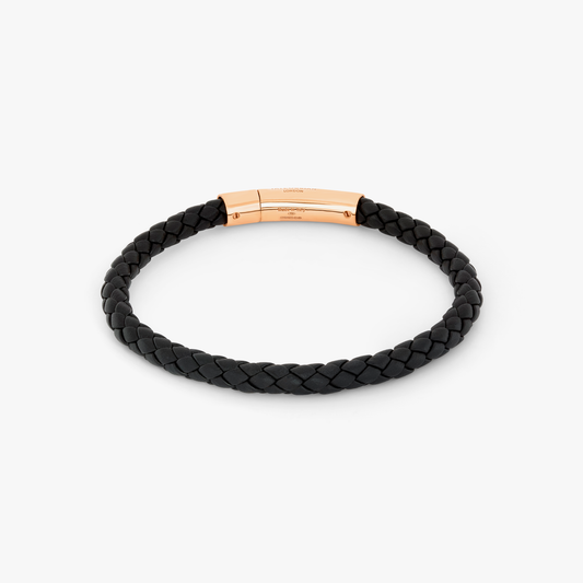Tubo Taito Black Leather Bracelet With 18K Rose Gold