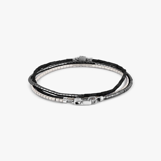 Navaho Triple Wrap Bracelet In Rhodium With Black Agate & Hematite