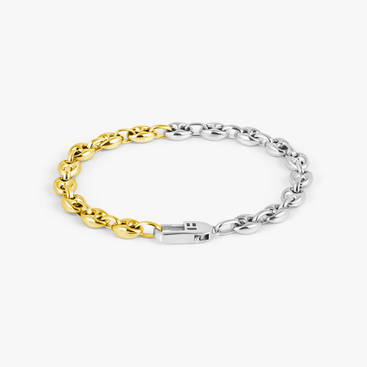 Duo Tone Marine Link Chain Bracelet In Sterling Silver