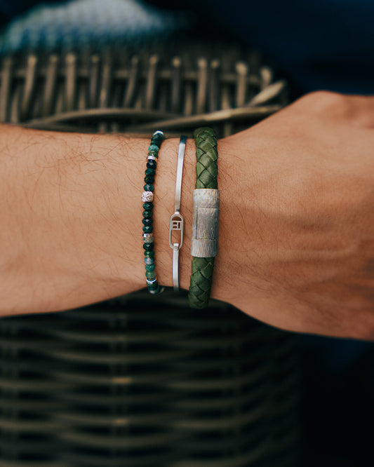 Graffiato Oval Leather Bracelet In Green