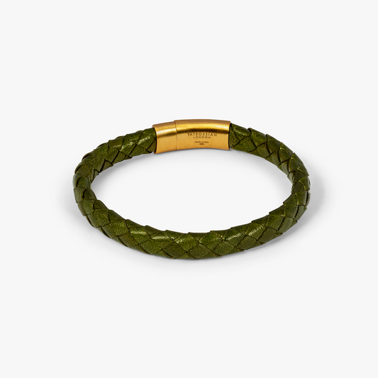 Graffiato Oval Leather Bracelet in Green with Yellow Gold Plated