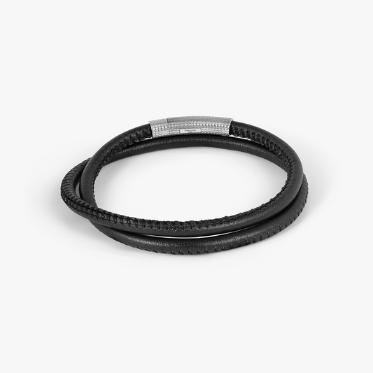 Giza Click Stitch Pelle Bracelet in Rhodium and Black Leather