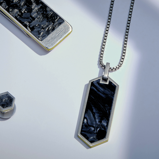 Automobili Lamborghini Hex Necklace In Titanium With Forged Carbon Fibre