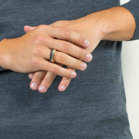 Mezzo Ring in Rhodium Plated Sterling Silver with Black Carbon Fibre