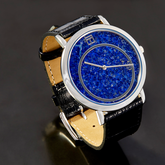 Prezioso Leather Watch In Black With Lapis And Stainless Steel