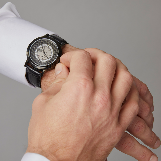 Tateossian watches are contemporary timepieces which combine our expertise of precision and style. They are designed to match our cufflinks collections with ease, featuring signature elements, such as carbon fibre and gear motifs.