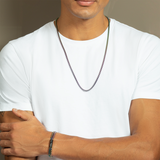 Iridescent Kaleidoscope Box Chain Necklace In Stainless Steel