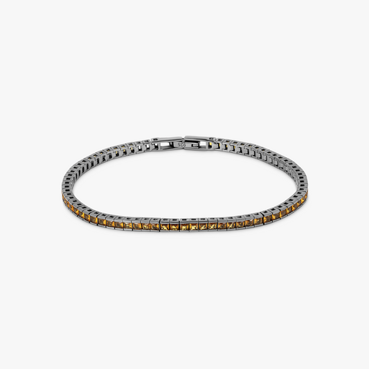 Quadro Tennis Semi-Precious Bracelet In Black Rhodium Plated Sterling Silver With Yellow Nano Stones