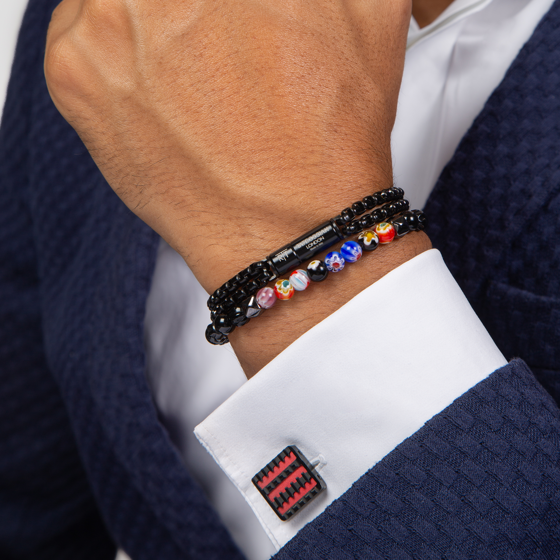 Jagged Elements Cufflinks In Red With Black IP Plated & Stainless Steel