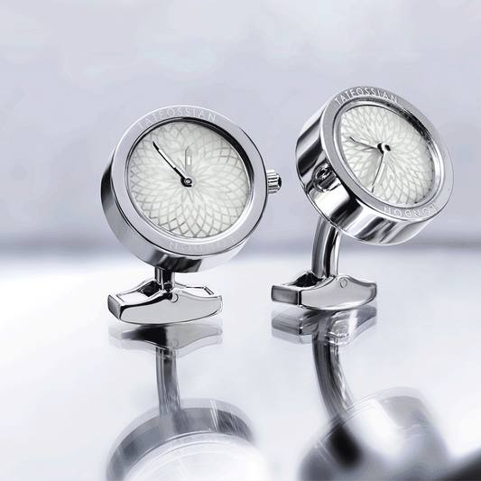Guilloche Watch Cufflinks In Stainless Steel with White MOP