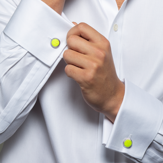 Tennis Ball Cufflinks In Palladium Plated With Green Enamel