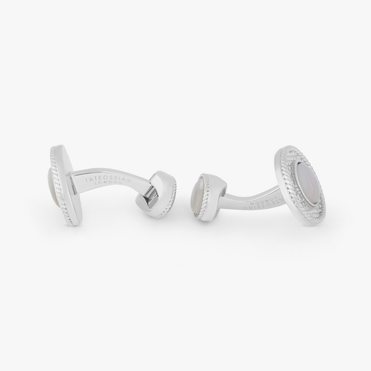 Cable Oval Cufflinks In Sterling Silver With Moonstone
