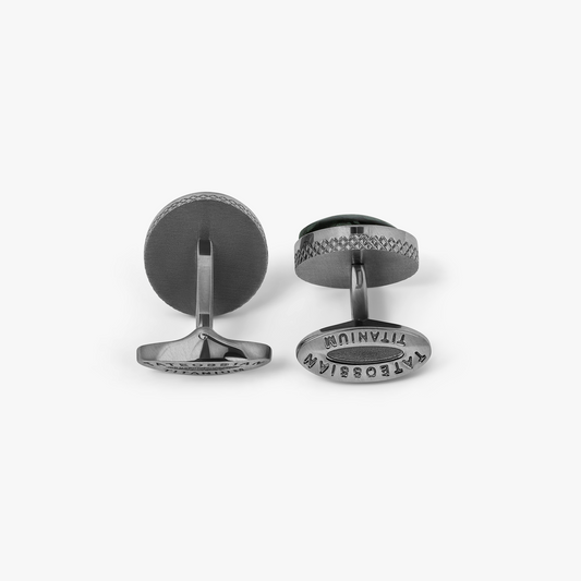 Green Gunmetal Plated Caviar Pentagon Beads Cufflinks