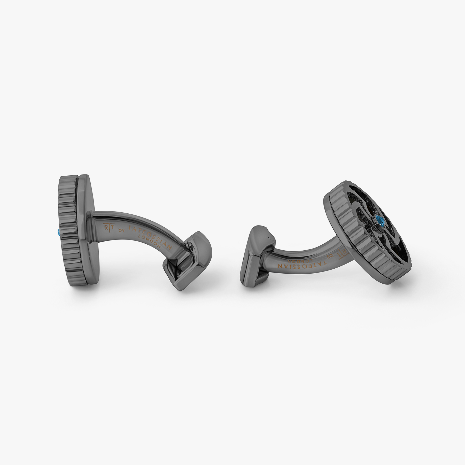 Rotating Trinity CufflinksNavy Enamel With Swarovski Crystals