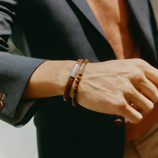 Giza Cobra Pelle Bracelet In Rhodium & Brown Leather
