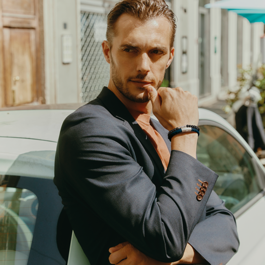 Giza Double Click Pelle Bracelet In Rhodium & Navy Leather