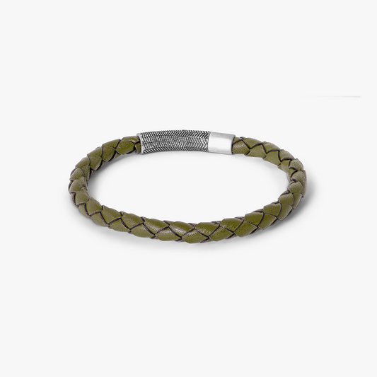 Vintage Herringbone Click Bracelet In Khaki Leather