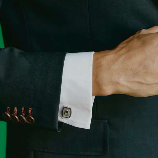 Ascot Stirrup Cufflinks in Palladium & Onyx