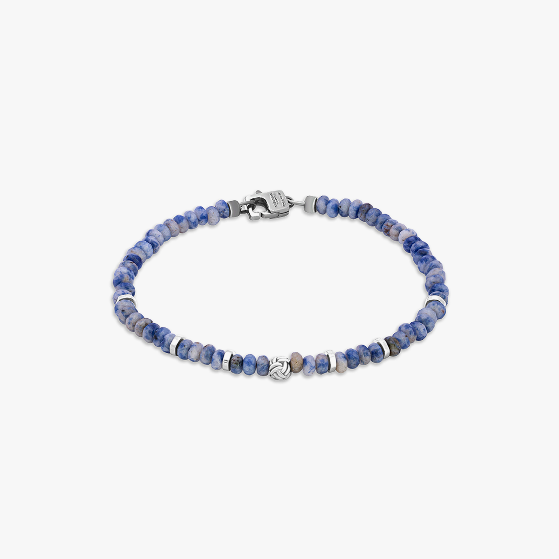 Nodo Beaded Bracelet In Rhodium Plated Silver With Blue Sapphire