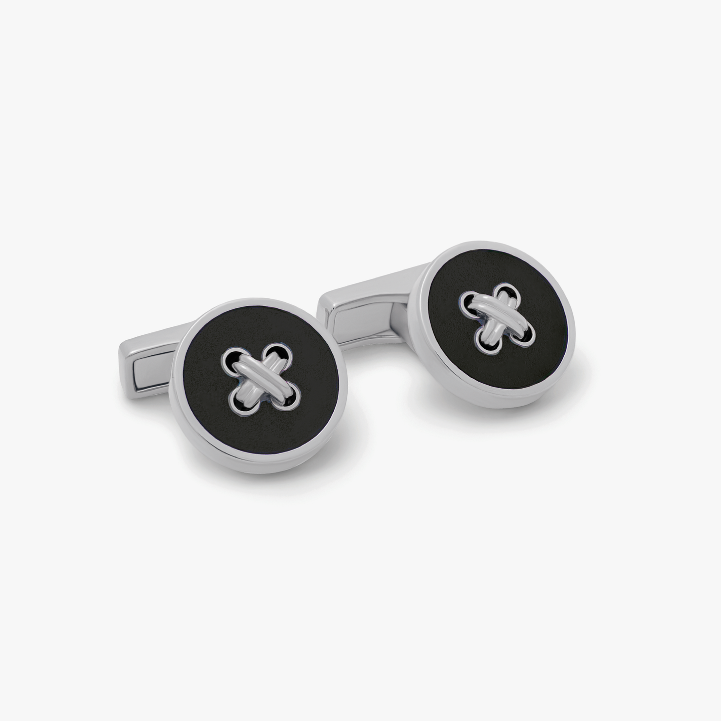 THOMPSON Tambor Button CufflinksPalladium Plated with Black Enamel