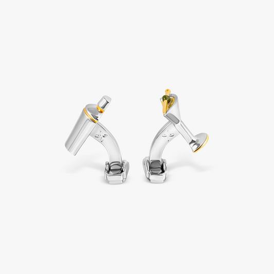 THOMPSON Martini Glass And Shaker Cufflinks In Palladium plated Base Metal With Green Enamel
