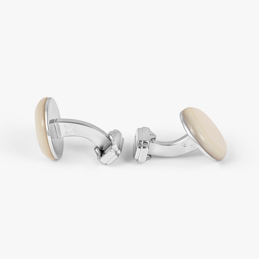 THOMPSON Summer Stripes Cufflinks In Palladium plated Base Metal With White Mother Of Pearl