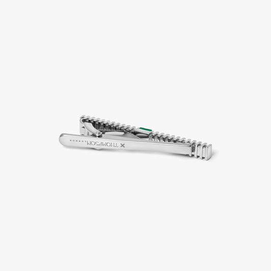 THOMPSON Stripe Grille Tie Clip in Palladium Plated with Malachite