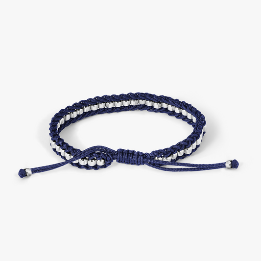 THOMPSON Tambor Button Cufflinks in Palladium Plated with Blue Enamel