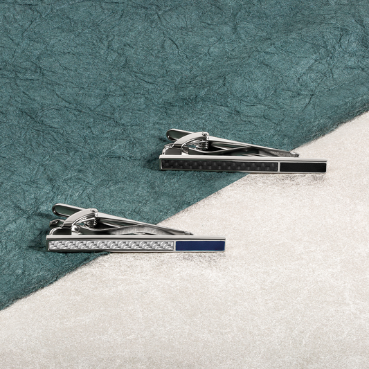 THOMPSON Carbon Fibre Tie Clip In White Bronze plated Base Metal With Black Carbon Fibre