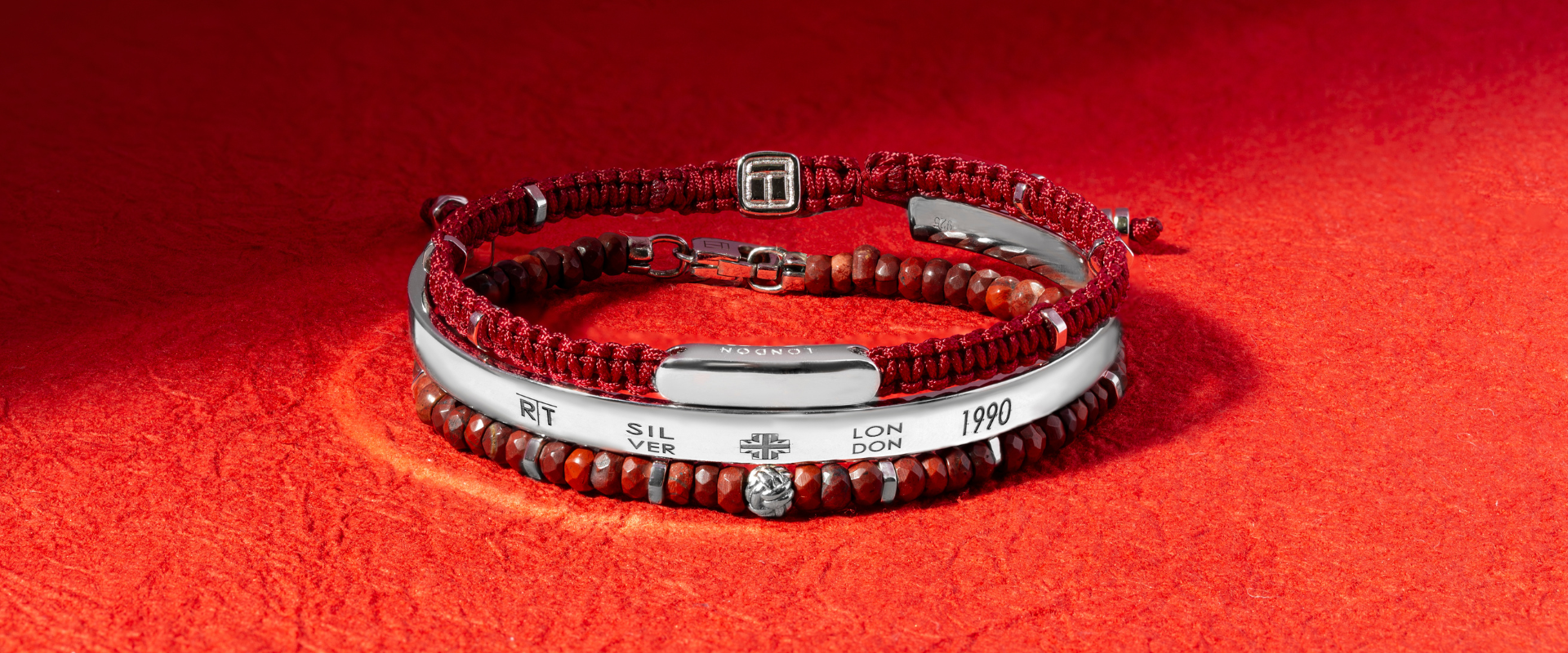 Macramé Bracelet In Red With Sterling Silver- Engravable