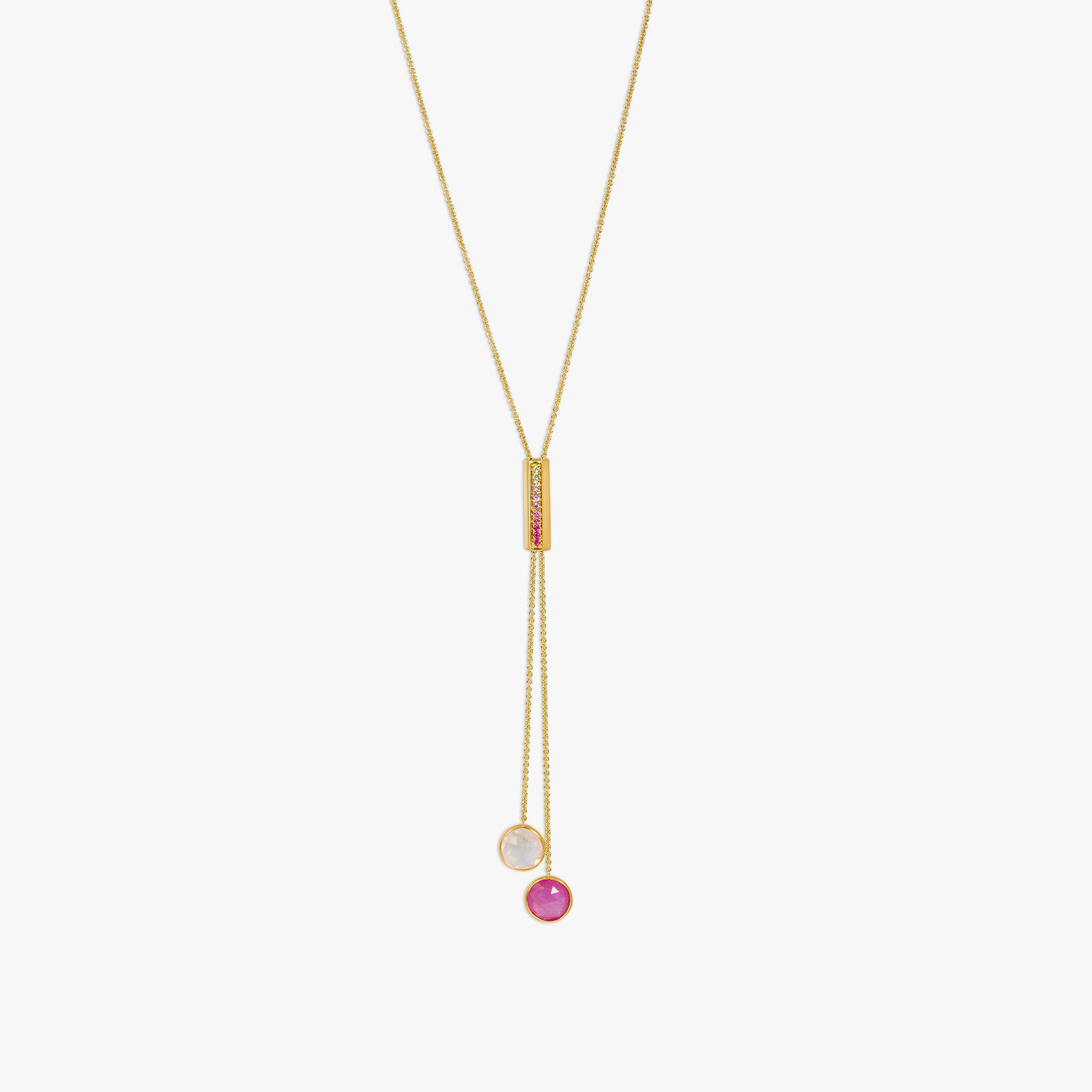 Pink Sapphire & Synthetic Quartz Sliding Necklace- 9K Yellow Gold