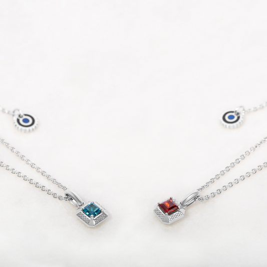 Blue Topaz Birthstone Necklace In Rhodium plated Sterling Silver