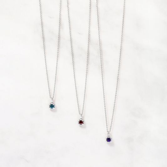 Garnet Birthstone Necklace In Rhodium Plated Sterling Silver
