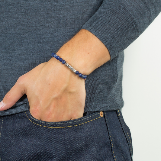 Classic Discs Beaded Bracelet In Rhodium Plated Silver With Blue Sodalite